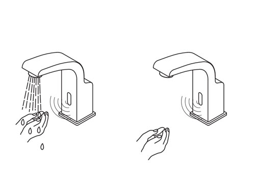 Open the angle valve for water supply, when the users reach out the hand to the sensitive water outlet range of the faucet in the customary way, the water will automatically come out from the faucet, and when retract the hands after washing, the water will automatically stop flowing.