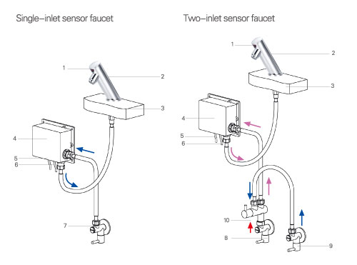 2.Sensor faucet body 7.Triangle valve